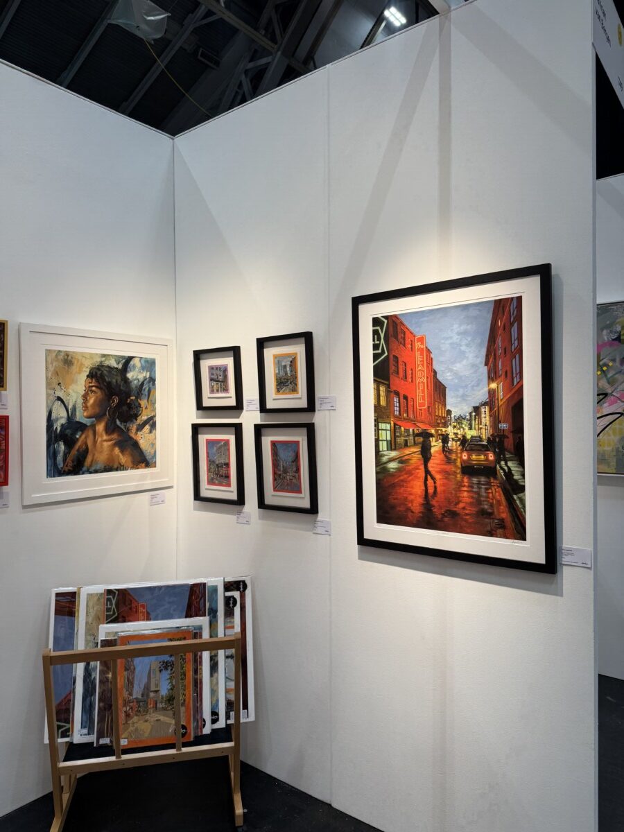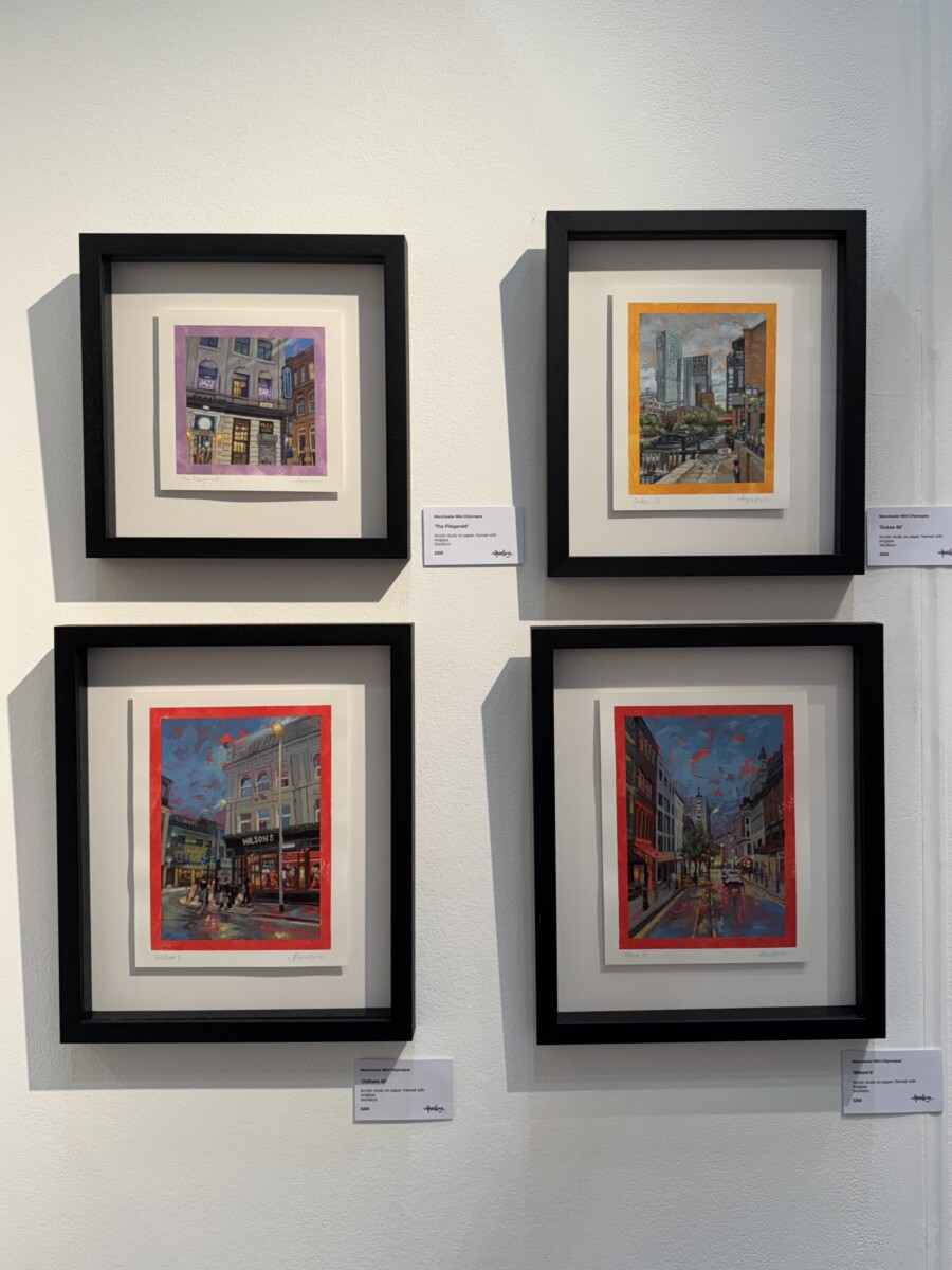 Taking inspiration from the external energy and vibrancy of city life, Amadora works in acrylic to capture cityscapes; in particular iconic venues from her hometown such as The Leadmill. She is also currently expanding her portfolio to capture scenes of Manchester.