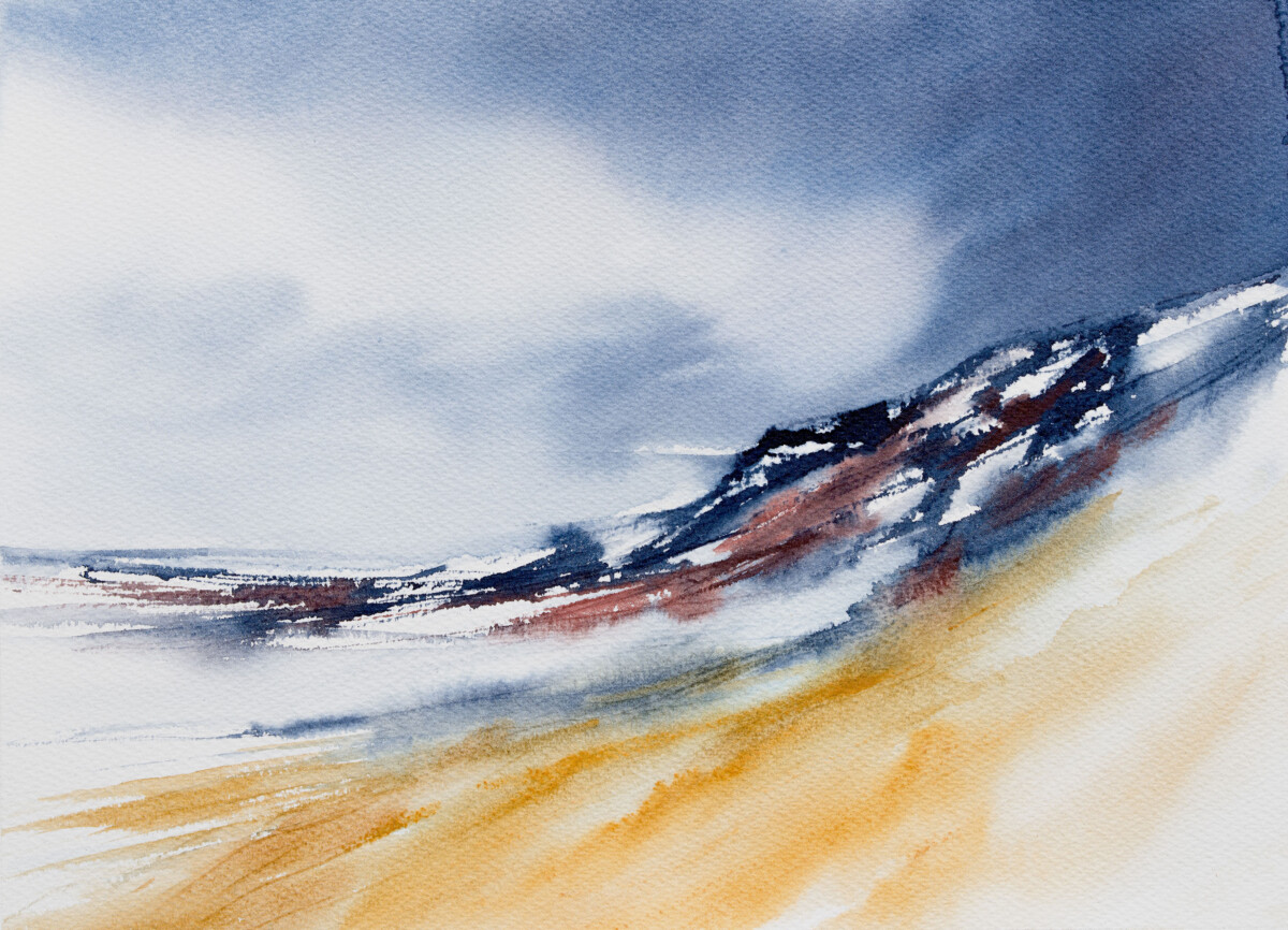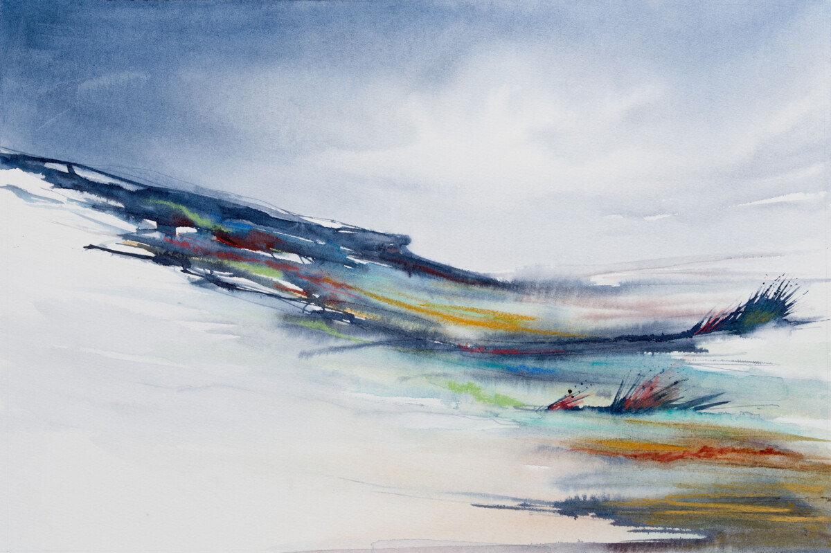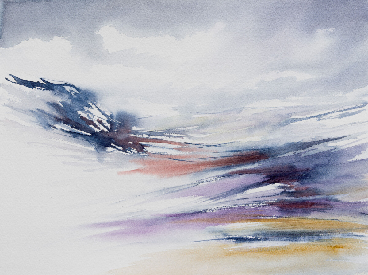 Recent works reveal a diversion into new subject areas. Whilst remaining firmly under the umbrella of Watercolour, her aim is to produce paintings which are, for her, both experimental and developmental, describing and reflecting on a spontaneous and emotional response to the subject matter which she chooses.