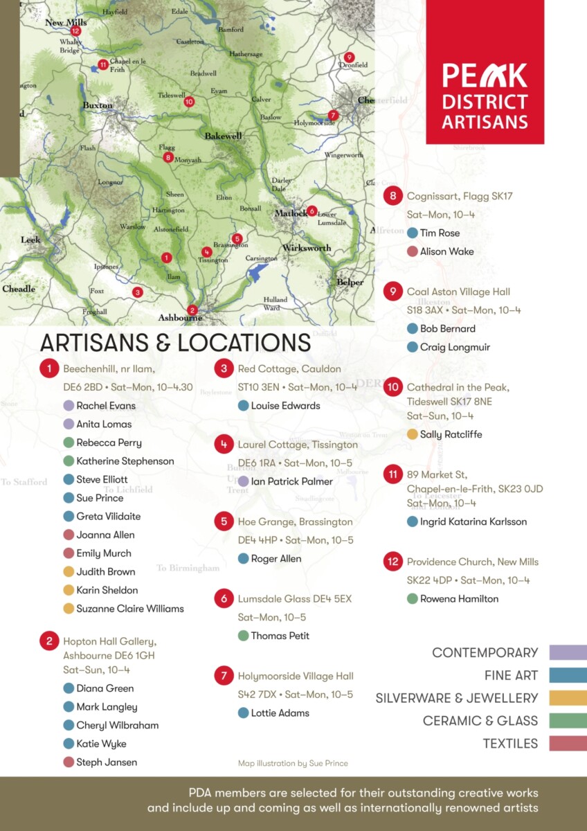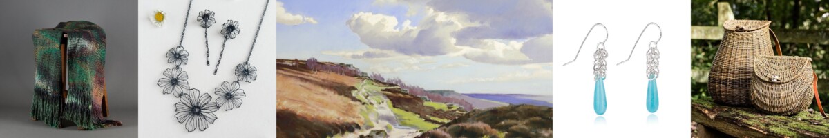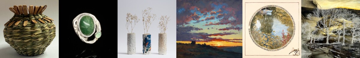 Fine artists Sue Prince, Greta Vilidaite, Steve Elliot & Joanna Allen; jewellers Karin Sheldon; Judith Brown & Suzanne Claire Williams; Weaver Emily Murch; ceramicist Rebecca Perry; glass artist Katherine Stephenson; and basket makers Rachel Evans & Anita Lomas.